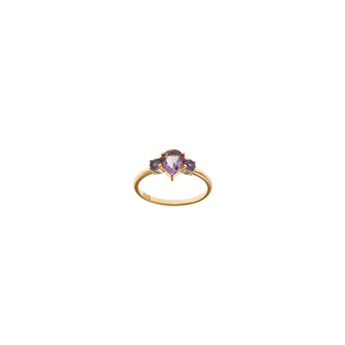 RING SILVER 925 PLATED GOLD AMETHYST PEAR