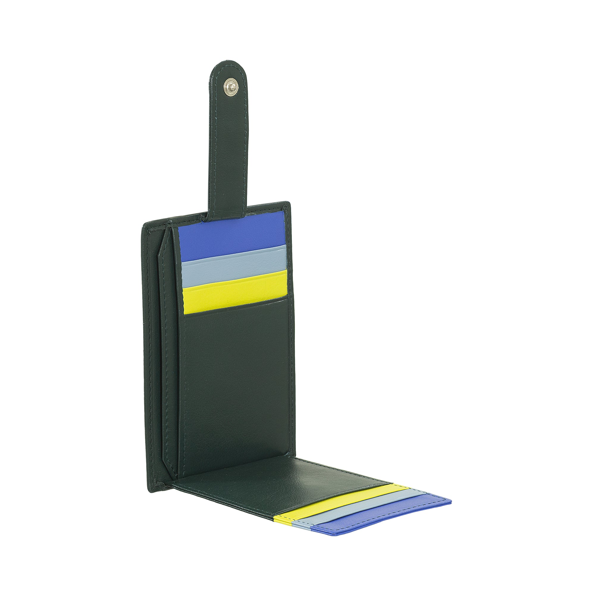 The Timor Unisex Wallet is crafted from soft genuine calfskin leather and features a vibrant multicolor design. It offers multiple card holder slots, two extra pockets, and a secure closing strap. Compact and stylish, this leather card holder keeps your essentials organized and easy to access—perfect for daily use and on-the-go conveniences.
