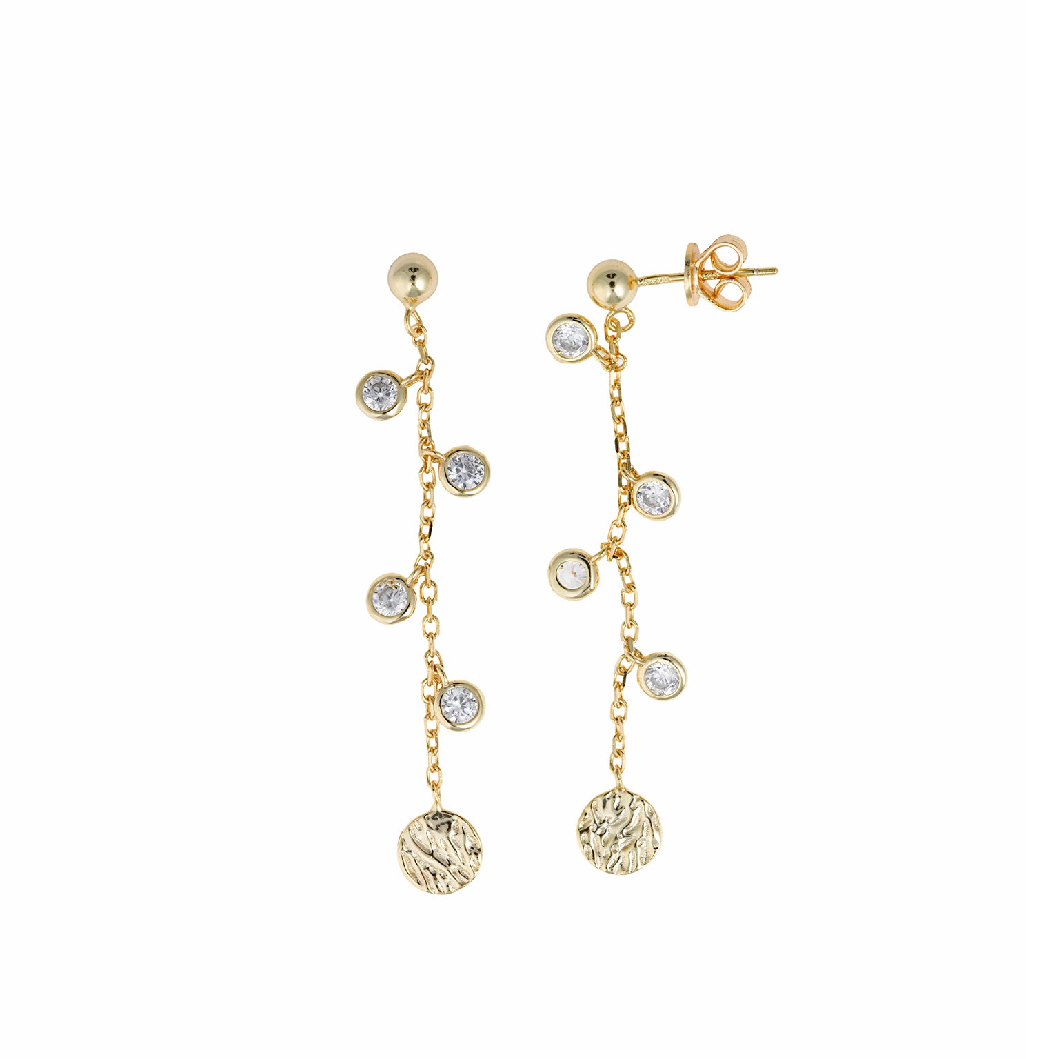 EARRING SILVER 925 PLATED GOLD CHAIN CHATON
