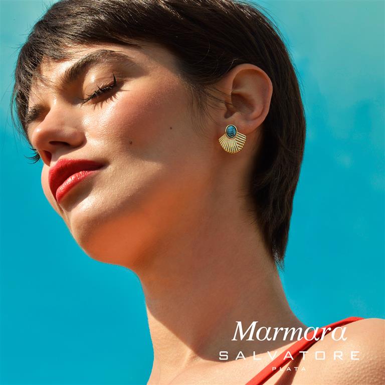 EARRINGS SILVER 925 PLATED GOLD OVAL TURQUOISE