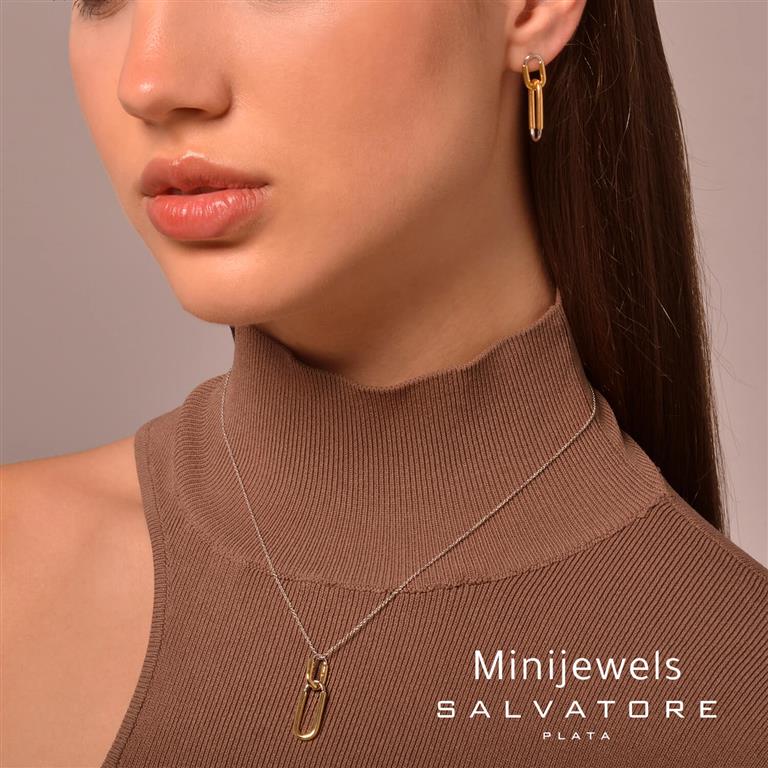 NECKLACE SILVER 925 PLATED GOLD AND RHODIUM TWO OVALS INTERLACED