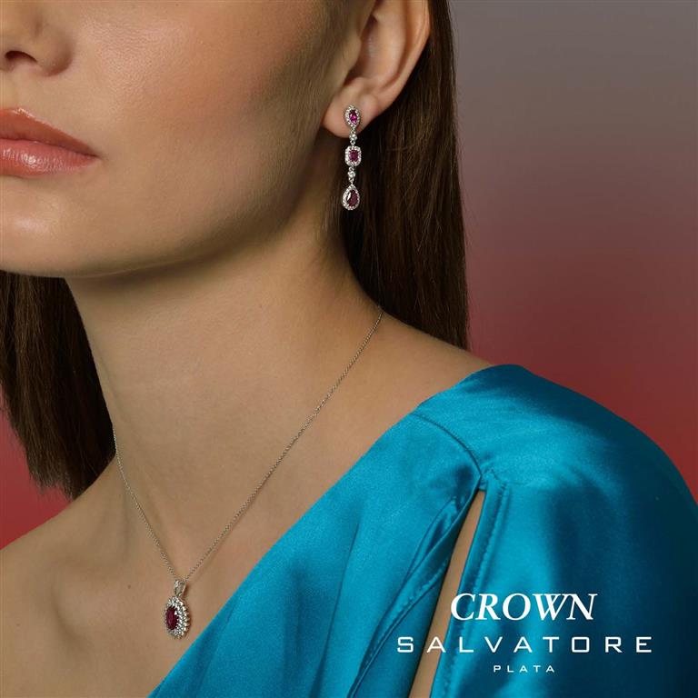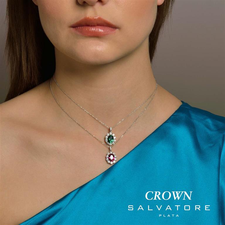 NECKLACE SILVER 925 RHODIUM OVAL RUBY AROUND