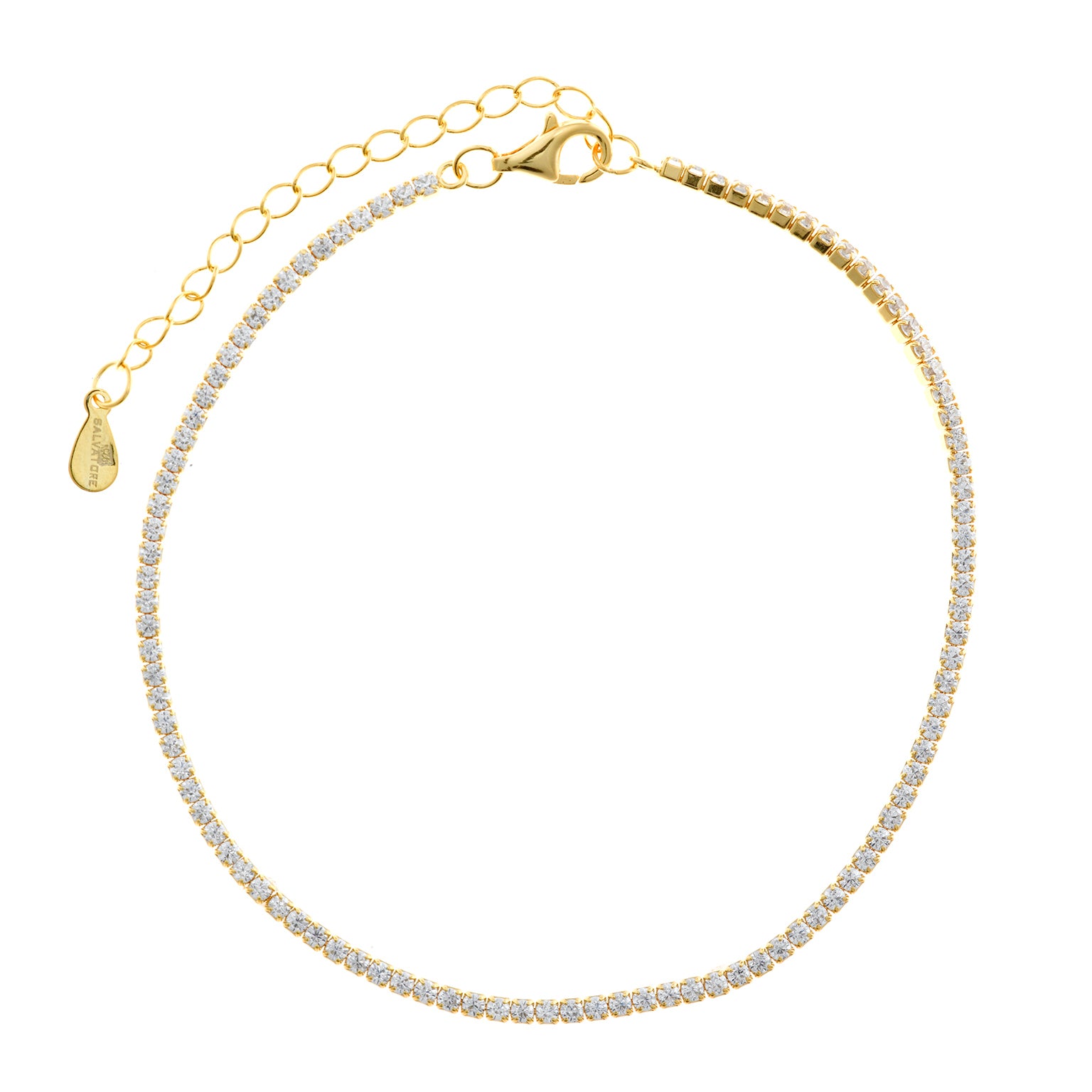 Composition: Rivière-style anklet with continuous brilliant-cut stones and adjustable extension.
