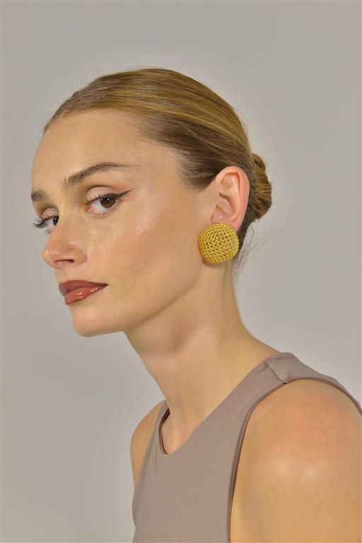 EARRING METAL PLATED GOLD CIRCLE BALLS LOCK