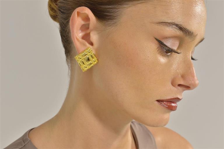 EARRING METAL PLATED GOLD DIAMOND TARTAN LOCK