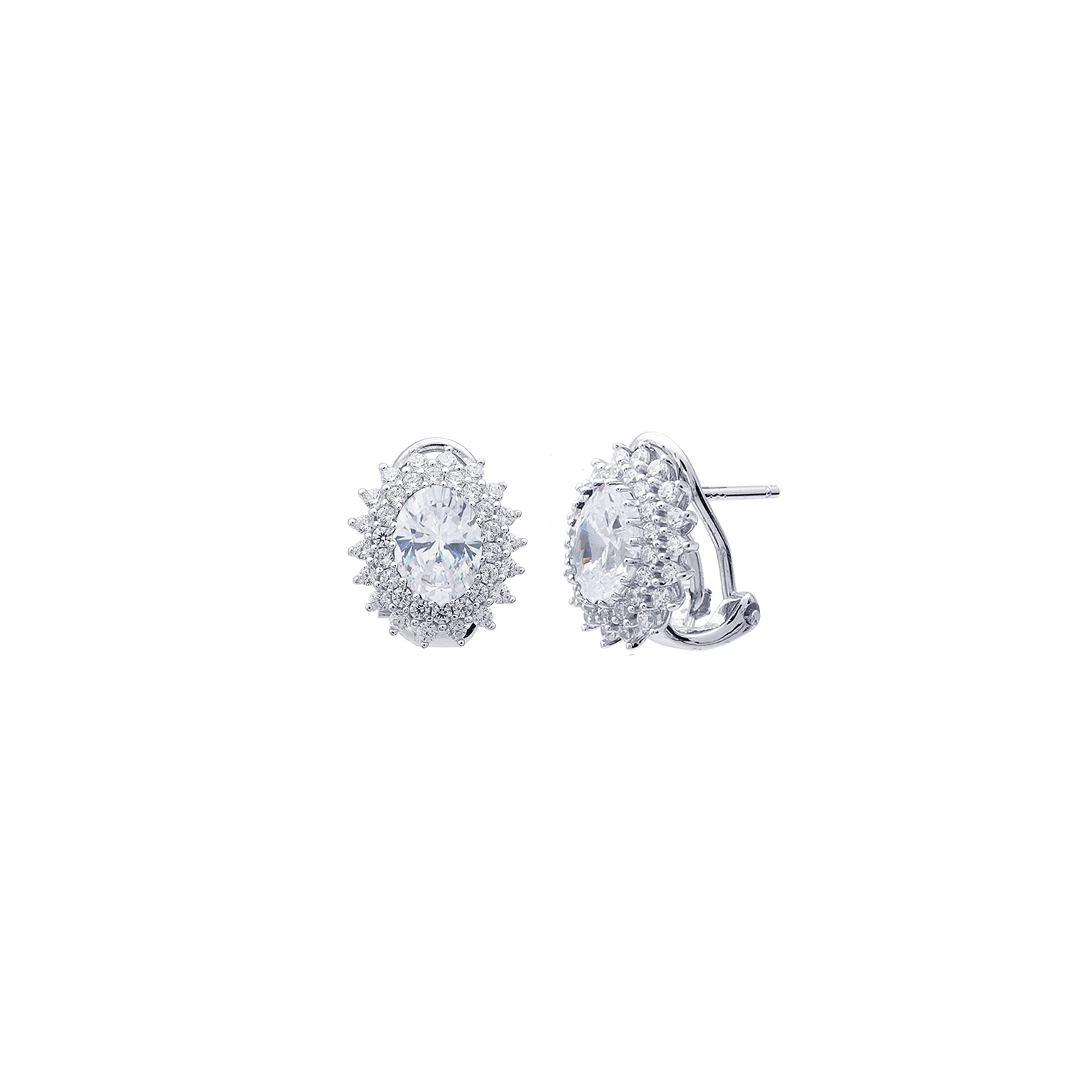 EARRINGS SILVER RHODIUM OVAL CZ WHITE BRILLANT
