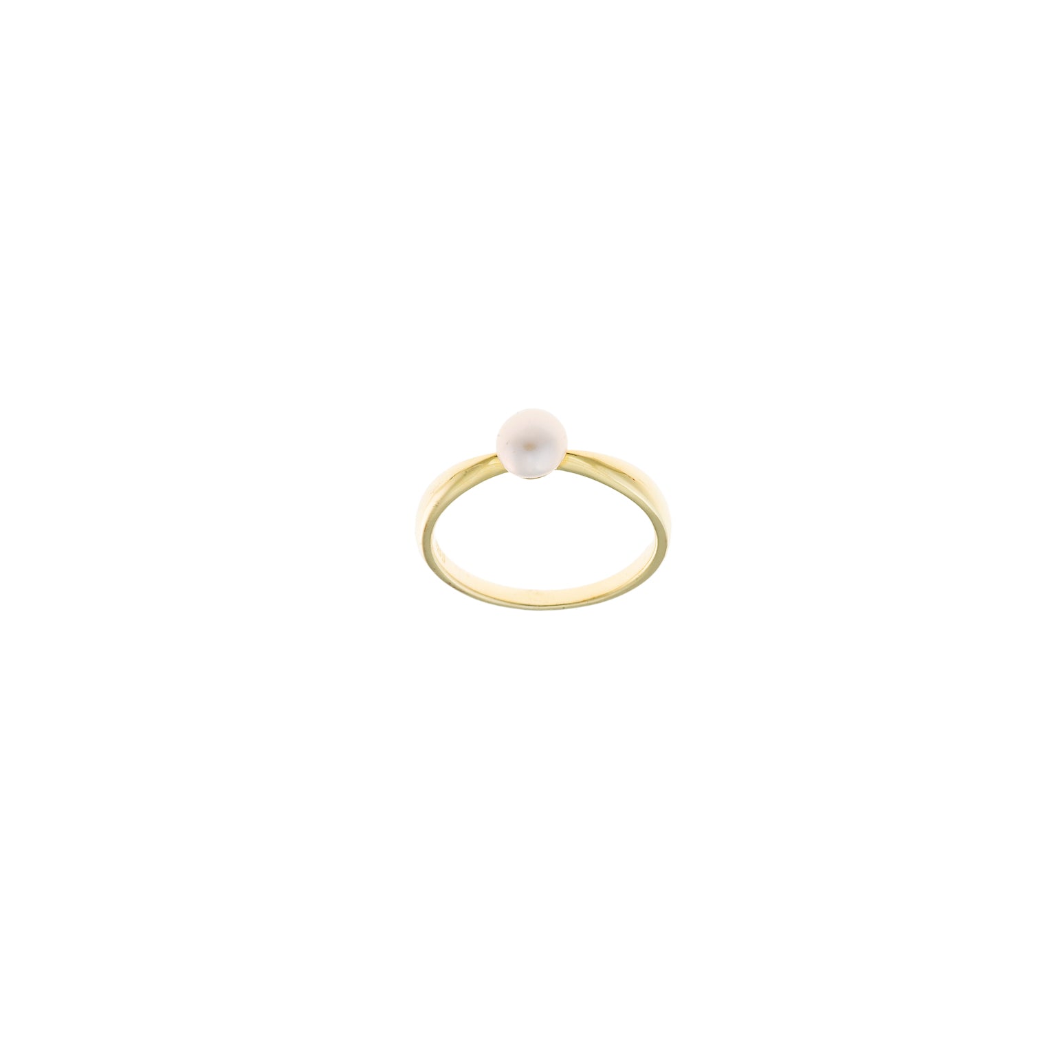 Composition: Ring with polished gold-plated band and single round pearl centerpiece.