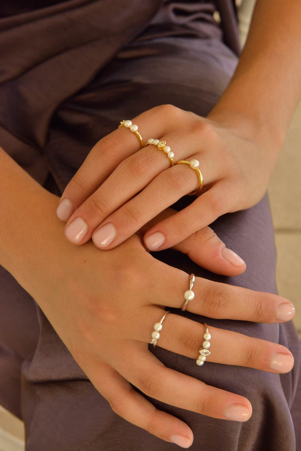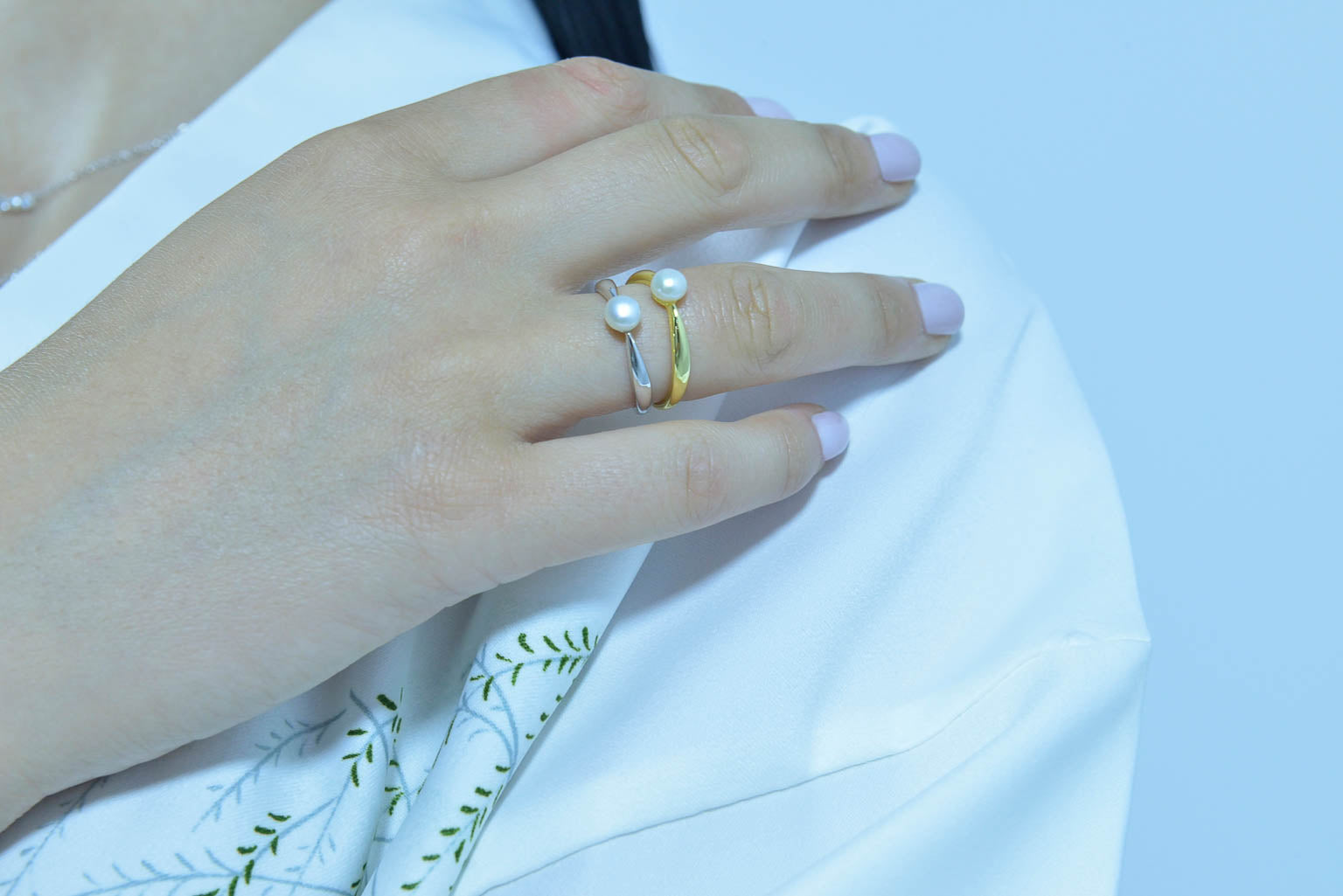NÉOLIS is defined by its clean gold-plated band crowned with a single luminous pearl. The simplicity of the silhouette allows the contrast between polished metal and soft pearl to take center stage — modern yet eternally elegant.