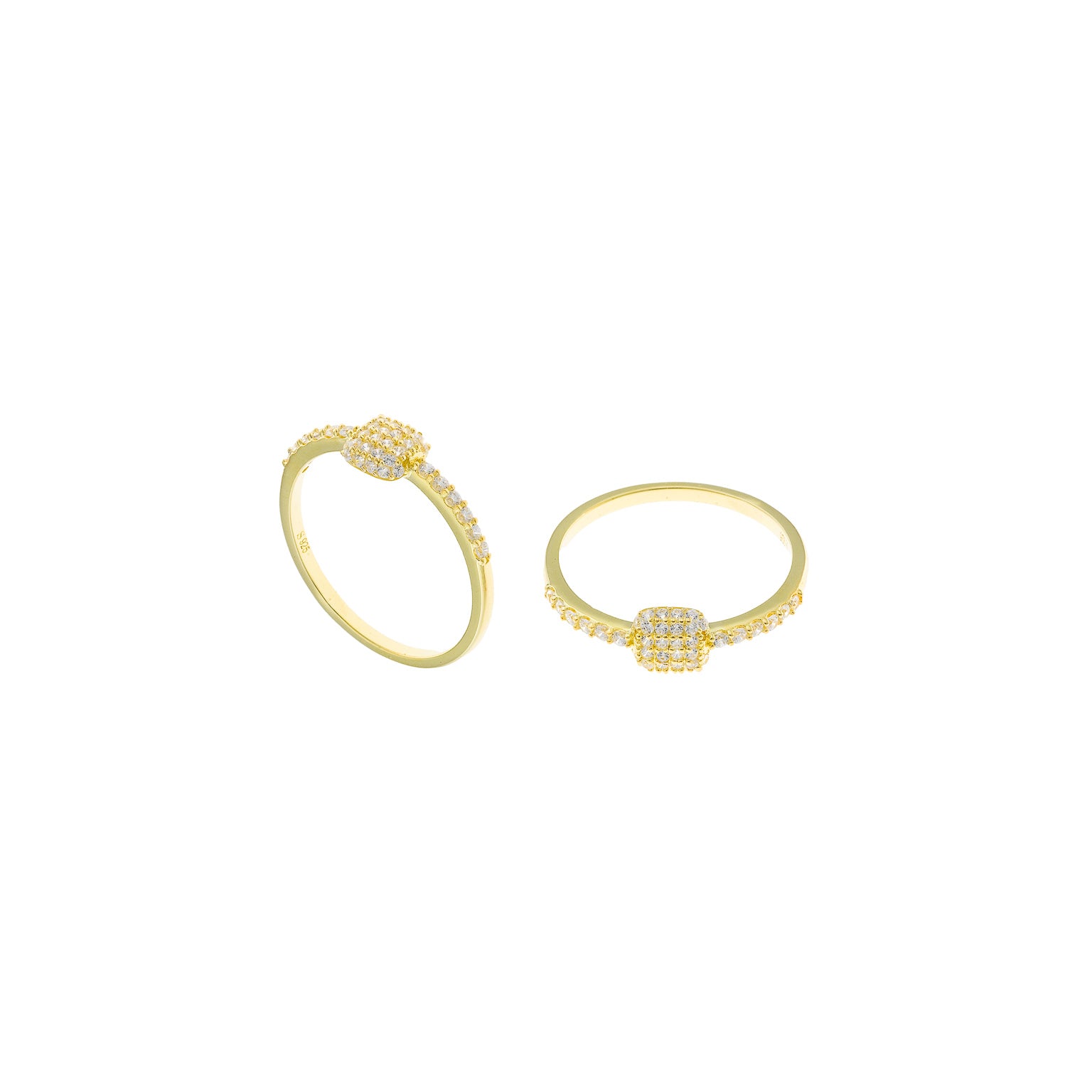 Composition: Ring with pavé-set square centerpiece and pavé-set shoulders on a polished gold-plated band.